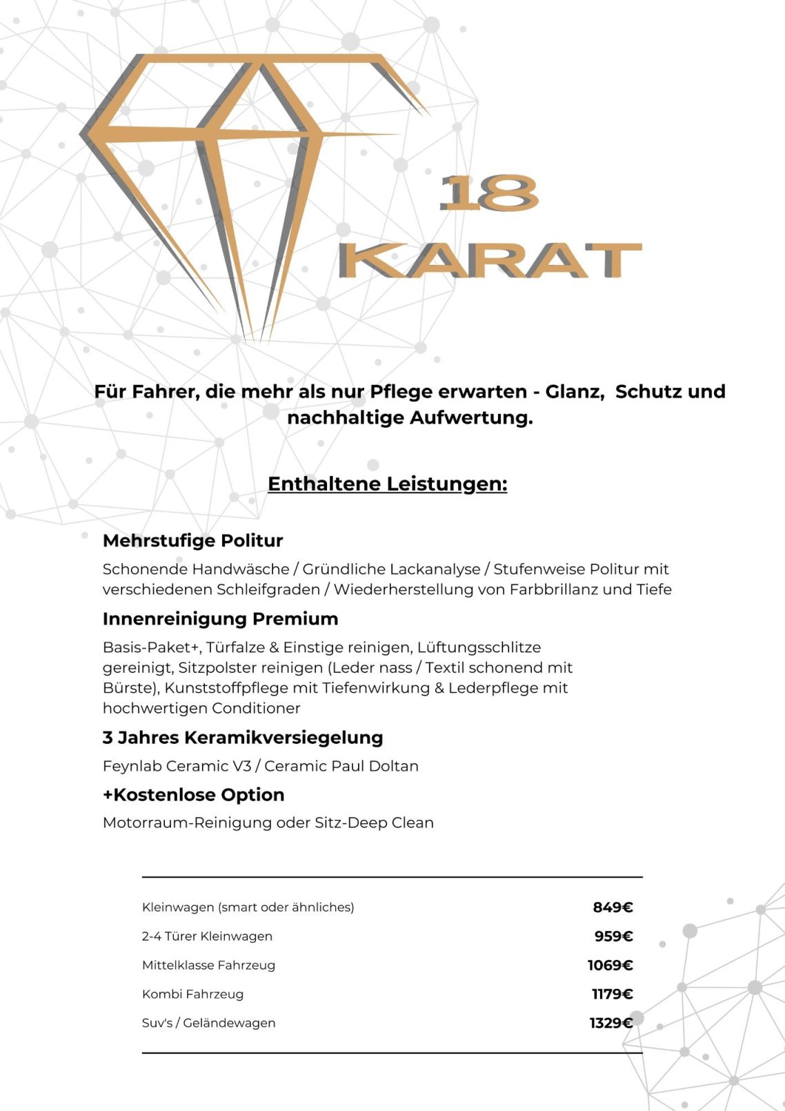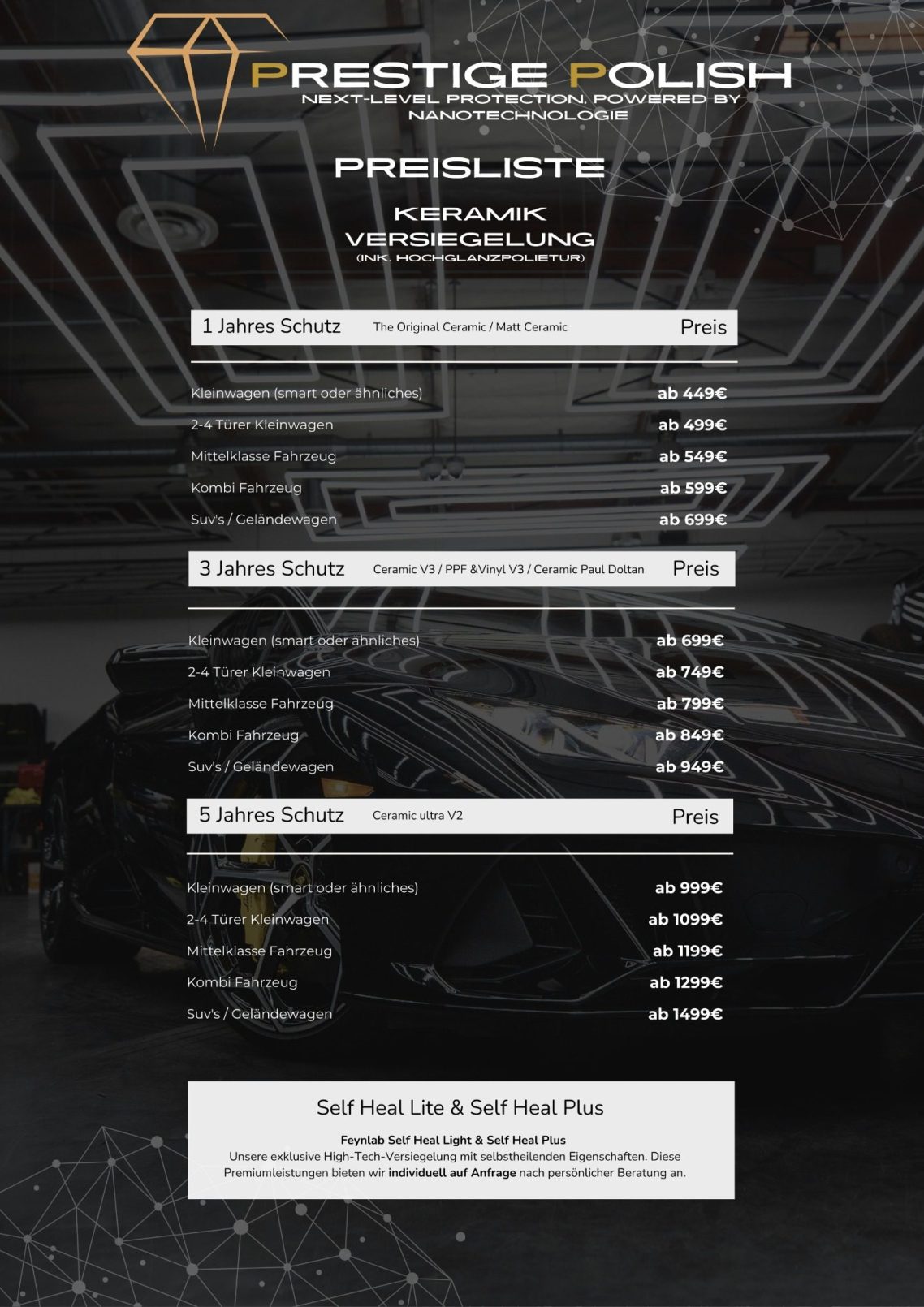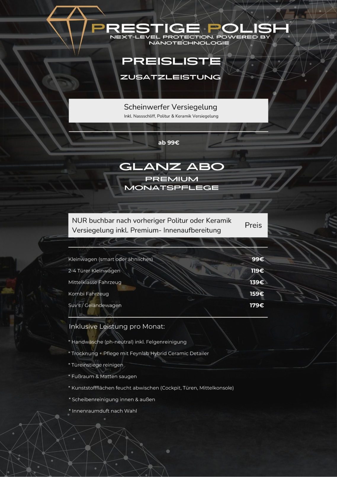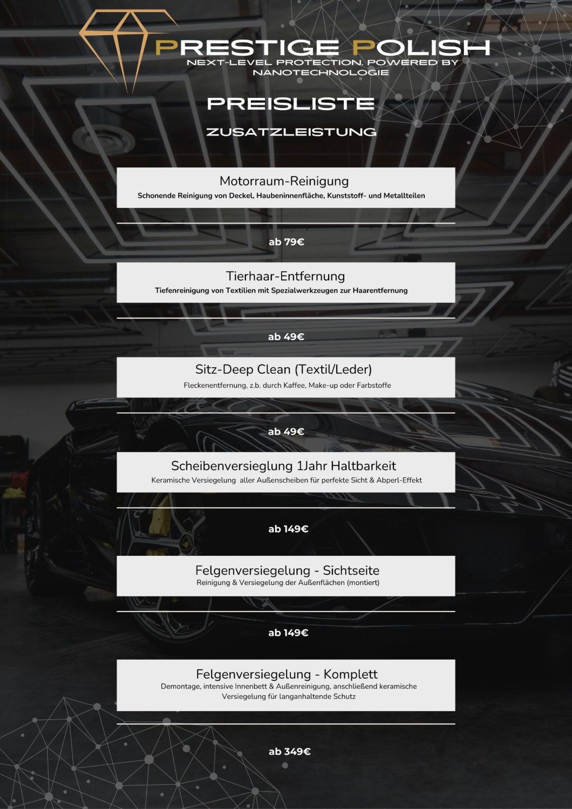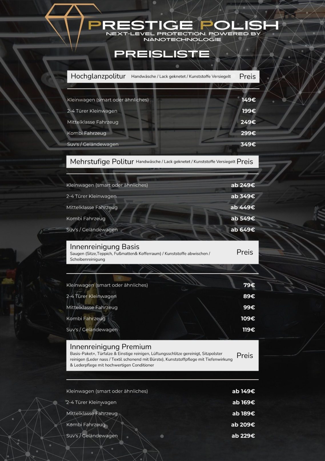 Der finale Preis wird daher immer nach Sichtung des Fahrzeugs festgelegt. So stellen wir sicher, dass Sie eine faire und auf Ihr Fahrzeug abgestimmte Leistung erhalten.