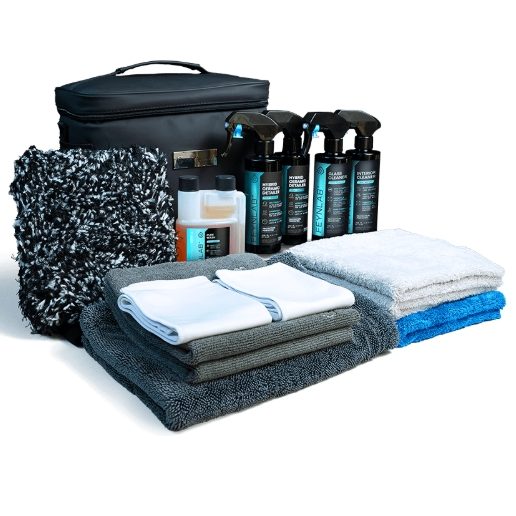 Eine durchdachte Tasche mit den wichtigsten Essentials, vom Detailer über hochwertige Tücher bis hin zu abgestimmten Reinigungsprodukten, ist die perfekte Ergänzung für jeden, der sein Fahrzeug liebt und Wert auf Pflege legt.
